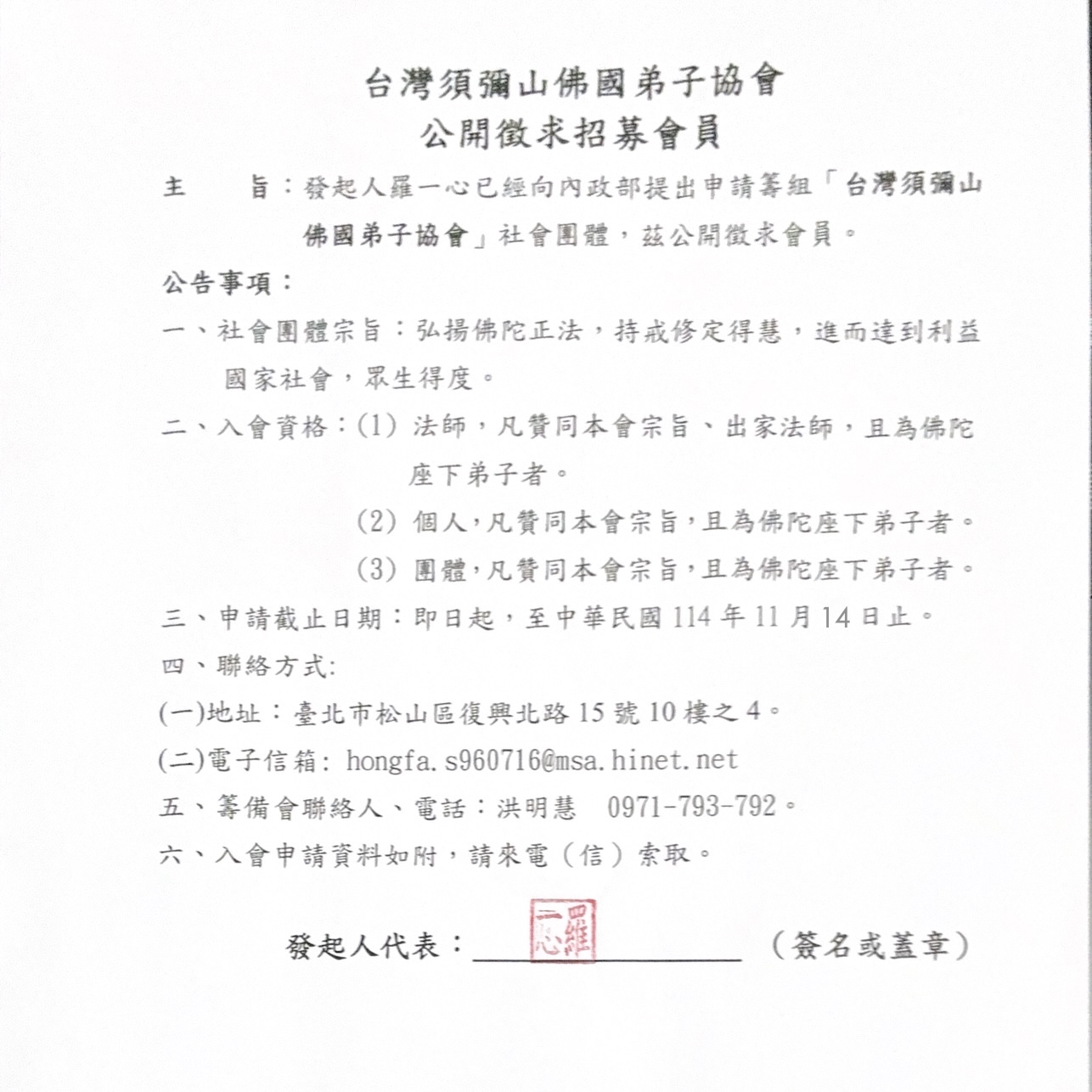 台灣須彌山佛國弟子協會 - 2025-11-05 最新訊息